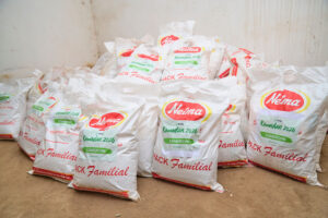 Pack après pack. Riz, farine, sucre, huile, sardines, haricots. Chaque nom appelé. Chaque personne reçue dignement. Aucune bousculade. Aucun désordre. Juste de l’ordre. Juste du respect. Juste de l’humanité.